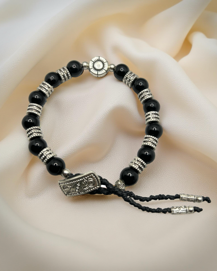 🖤 Feita em pedras roladas de ônix preto, sÃmbolo de força interior, proteção e determinação, esta pulseira traz a energia de estabilidade e foco para o dia a dia.