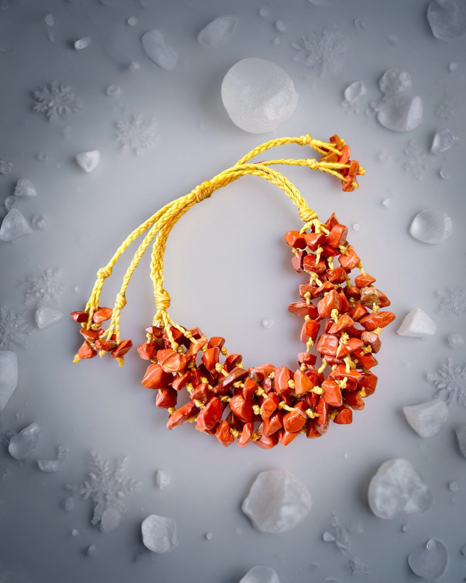 Pulseira artesanal feita à mão com jaspe vermelho natural, cuidadosamente selecionado.