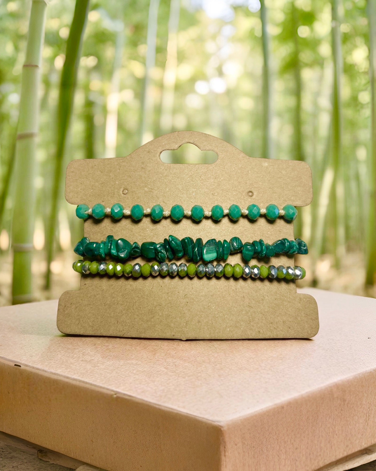 Trio de Pulseiras Malaquita - Proteção, Equilíbrio e Renovação.